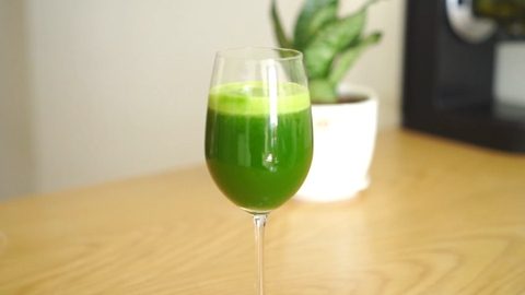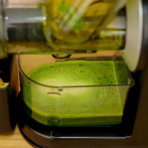 Nước ép quýt, táo và cải bó xôi sau khi hoàn thành có màu xanh tươi đẹp mắt và cực thơm ngon.