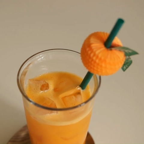 Món nước ép quýt hoàn thành với màu sắc cực bắt mắt. Khi thưởng thức, bạn sẽ cảm nhận được vị ngọt thanh của quýt tự nhiên, mát lạnh.